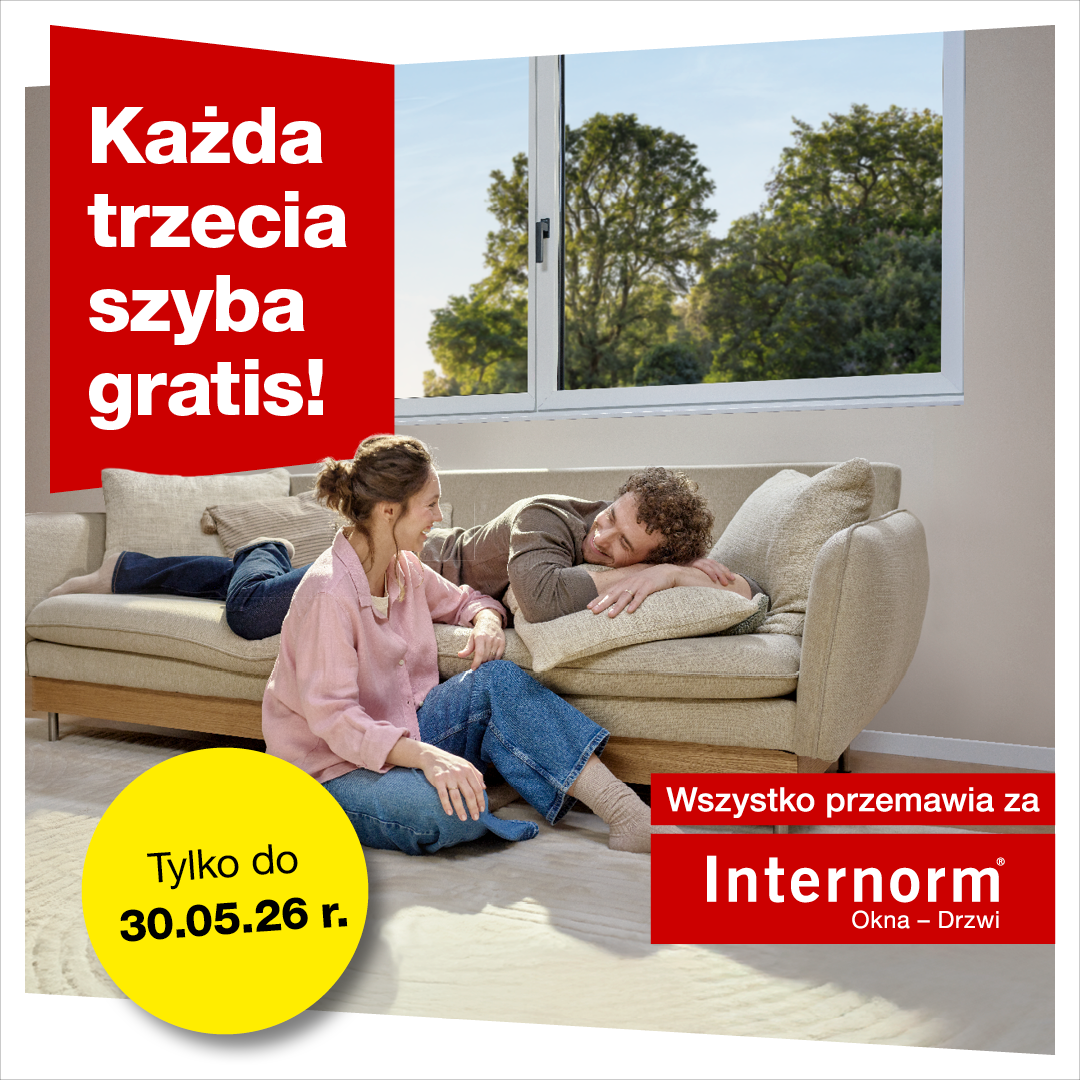 Do 30.05.2026 możesz zamówić okna Internorm z pakietem 3-szybowym bez dopłaty. To oznacza, że wybierasz wyższy standard i oszczędzasz 100% standardowej dopłaty do 3. szyby.