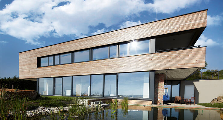 realizacja iftm group x internorm - szara willa; czarne okna