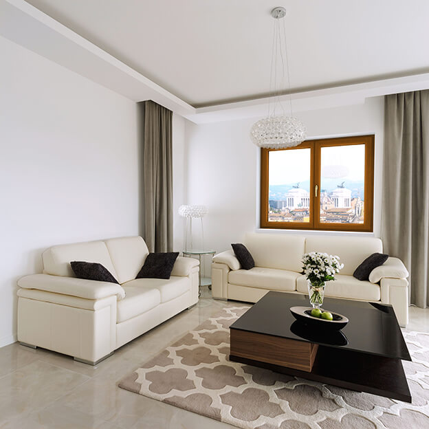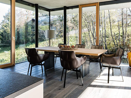 Drewno nadaje wnętrzu przytulnego charakteru, sprawiając, że emanuje ono ciepłem i klasyczną elegancją. Okna w kolorze złotego dębu doskonale współgrają z drewnianymi meblami, a najlepiej z drewnem ciemnym. Złoty dąb sprawdzi się także we wnętrzach z drewnianą podłogą. Ponadto można go dopasować do drzwi drewnianych lub elementów wykończeniowych sofy, krzeseł i foteli. W klasycznych wnętrzach obok mebli z drewna często umieszcza się duże skórzane kanapy, z którymi złoty dąb tworzy fantastyczny duet.