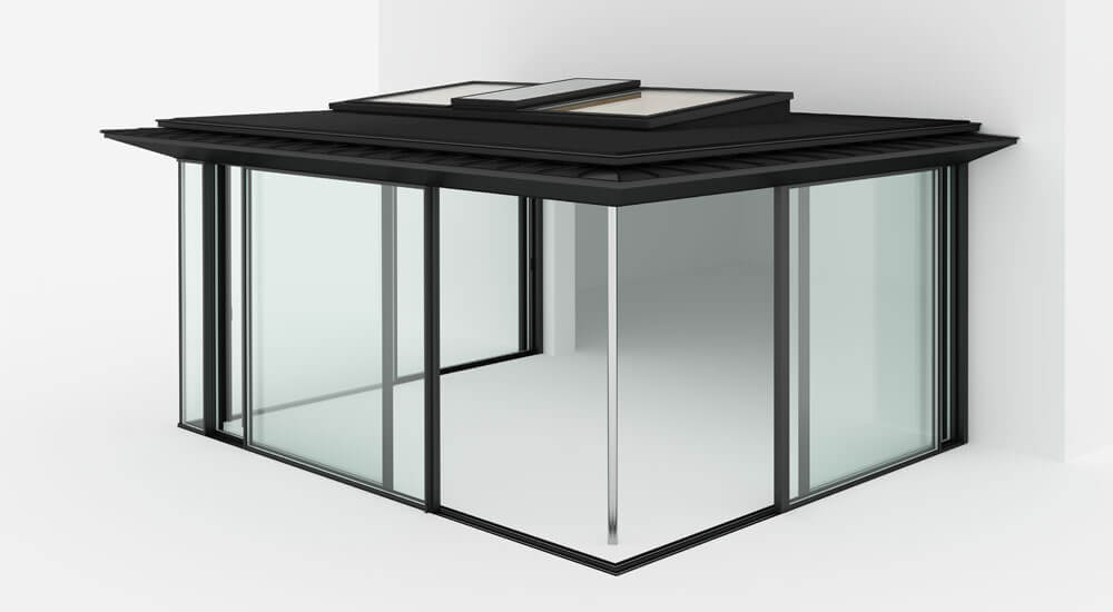 • Świetlik dostępny w wersji z dachem jednospadowym lub dwuspadowym, z możliwością zastosowania systemowych profili dachowych Solarlux