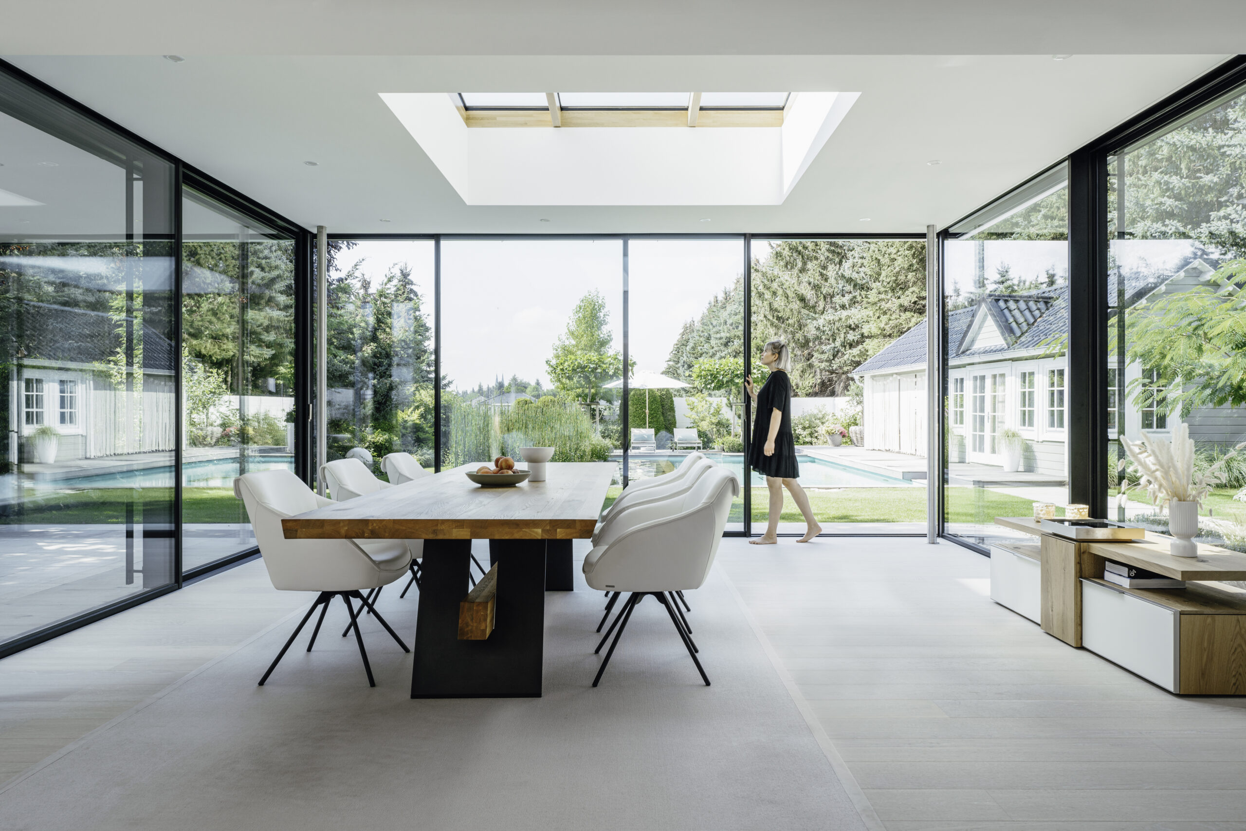 Cienkoramowe systemy cero oferują minimalistyczny wygląd – z niemal niewidocznymi ramami i ogromnymi przeszkleniami, które dają spektakularny efekt wizualny i poczucie przestrzeni. Z kolei okna harmonijkowe Ecoline pozwalają na całkowite otwarcie ściany ogrodu zimowego, składając skrzydła jak książkę i przesuwając je na bok.